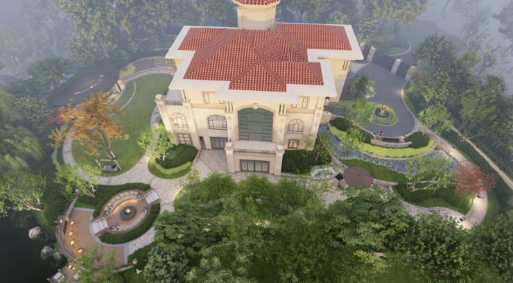 【佘山东紫园】墅区每户都配有独立的景观,配合以石步道、私家泳池、观鱼池或推杆高尔夫果林等景观,每户的占地大致在2.5-3亩左右。