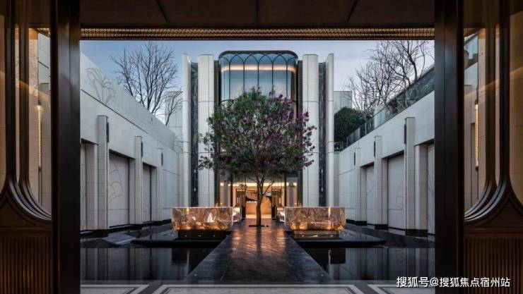 下沉式庭院则以土耳其进口老虎玉为基底,经匠人60天手工细细打磨;树龄超60年的福木「紫薇」,跨越万水千山从远方寻得。