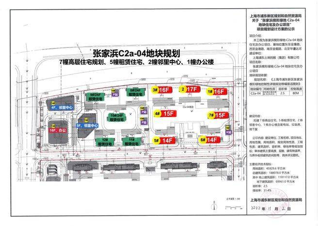 项目东至金豫路、西至金港路、南至金崛路、北至华漕达河。拟建设7栋14至17层商品住宅、5栋17至24层租赁住宅、2栋4至5层邻里中心及1栋16层办公楼组成。