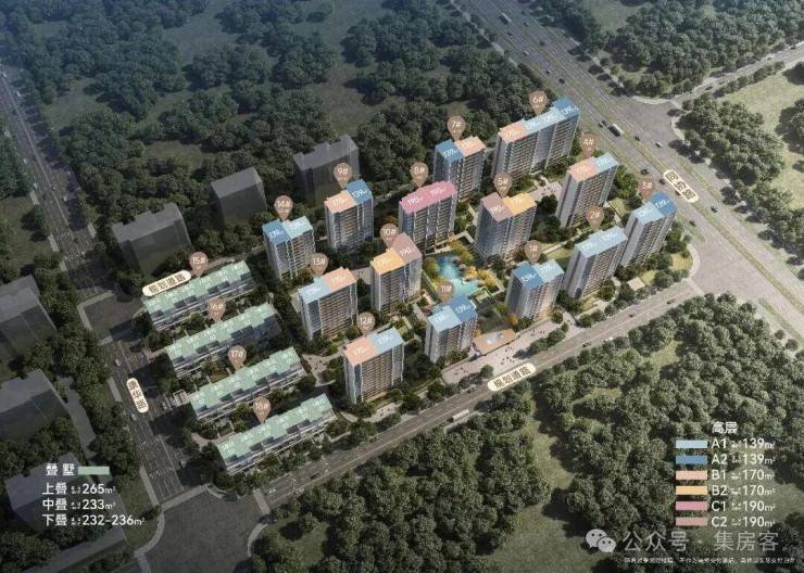 The floor area of the high-rise building is about 139-190 square meters, and the floor area of the stacked villa is about 230-263 square meters
