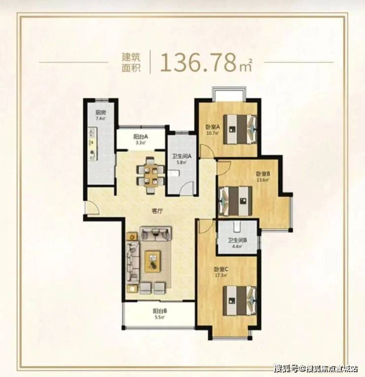 4号401室建面约136.78m²3房,总价10169045元