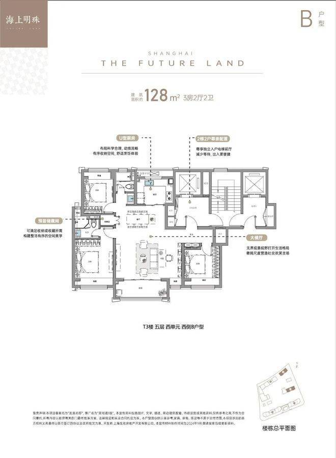 其中,建面约128㎡大三房,大横厅设计外接大阳台,同时客餐厅一体化设计进一步放大社交空间。