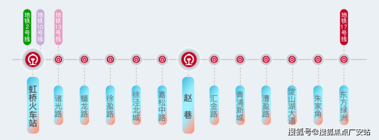 作为链接虹桥主城片区与长三角生态绿色一体化发展示范区的交通动脉,上海示范区线(在建)核聚华为研发基地、长三角演艺中心、美的全球创新园区、西虹桥科创中心、安踏全球零售总部等多个产业高地