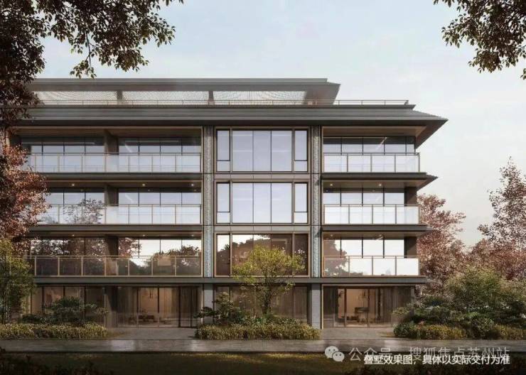 【立面】项目立面通过多种新中式元素构筑东方建筑美学,让建筑本身温润厚重从而历久弥新。横向采用大面玻璃幕墙,保障隐私的同时,尽可能的增大建筑内外场景对话。