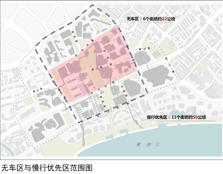 约50公顷慢行优先区(含22公顷无车区)的规划,超越纽约时代广场的纯步行区和东京丸之内商务区,将地面空间还给行人与商业;
