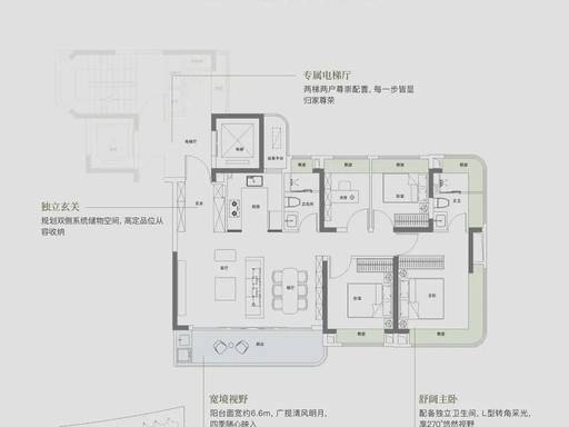 小高层 126㎡四房两厅两卫:四开间朝南、横厅设计、270° 飘窗,空间利用率高,总价 800-900 万,二胎 / 三代同堂优选。