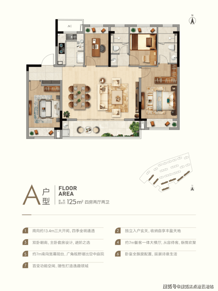 其中139㎡户型栋楼位于社区中间, 依主轴景观而立,大开间朝南设计形成奢阔面宽,放大每户的视野与采光。居家空间的每一个角落饱览不加遮挡的自然风光,尽享生活的惬意。