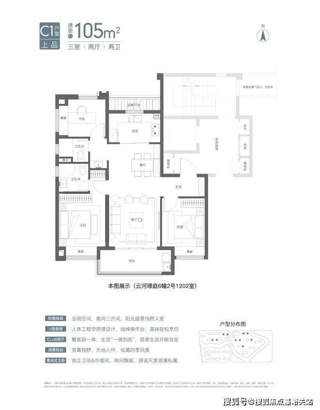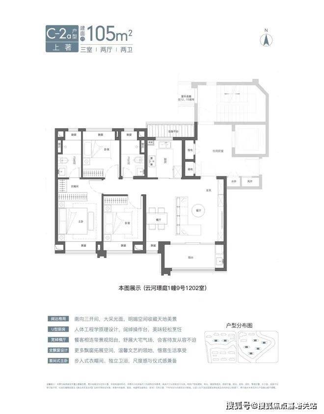 国贸虹桥璟上售楼处电话:400-902-3966首先是建面约105㎡3房边套,飞机户型,客餐厅阳台厨房一线联通,南北通透。