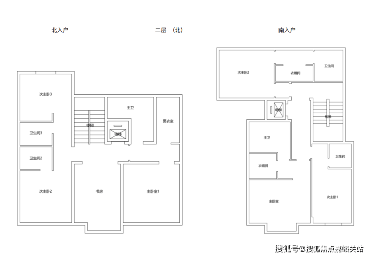 210户型北入户和东西入户二楼户型