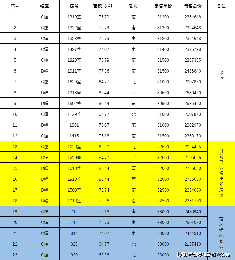 C幢3梯17户(在售朝南9户,朝北6户);