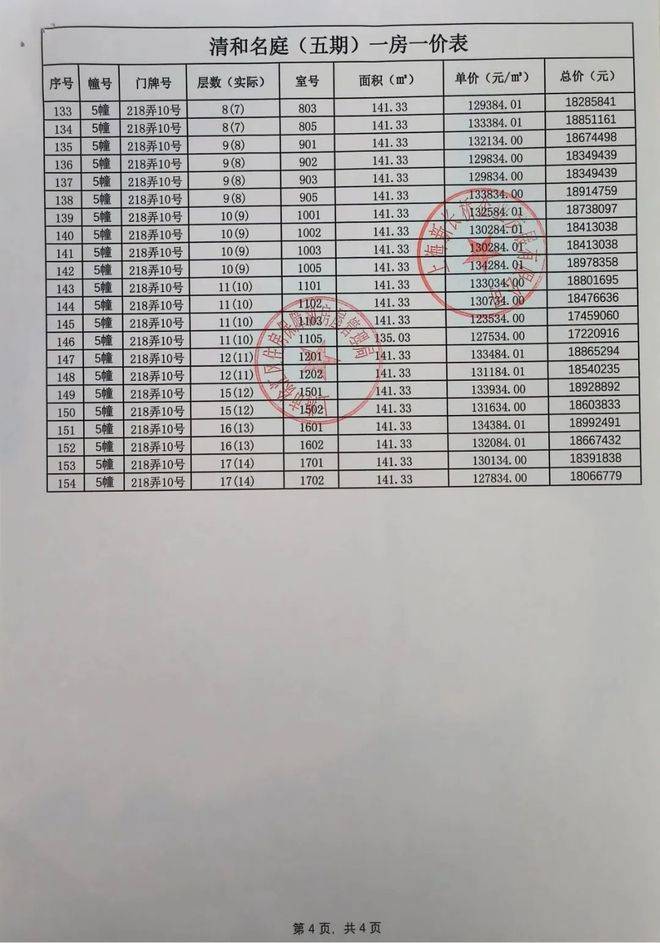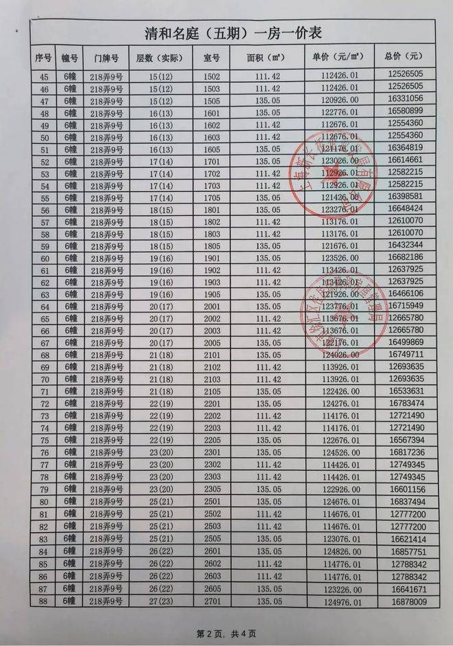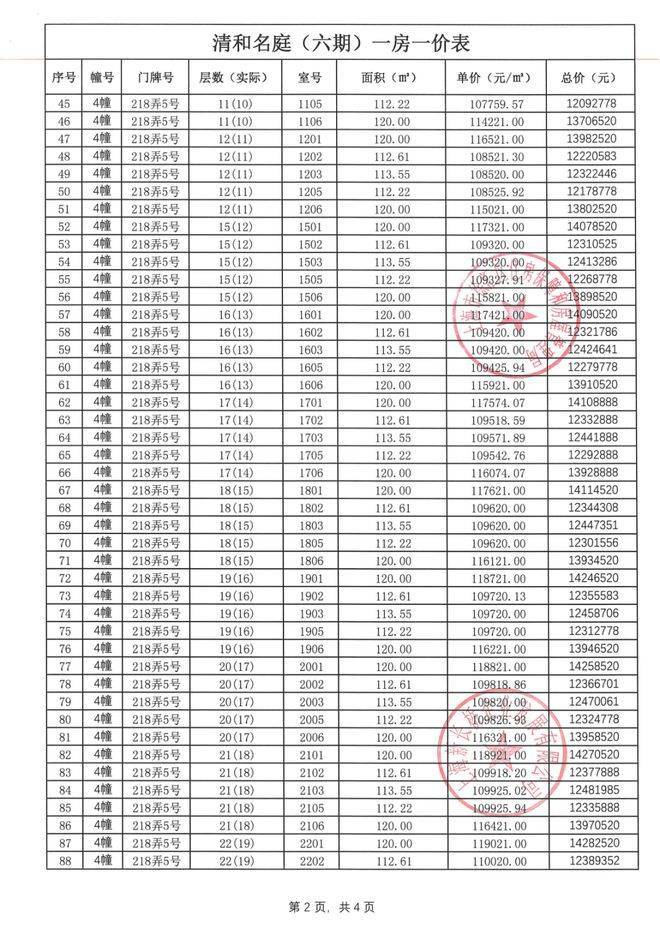 前期一房一价表公示 :