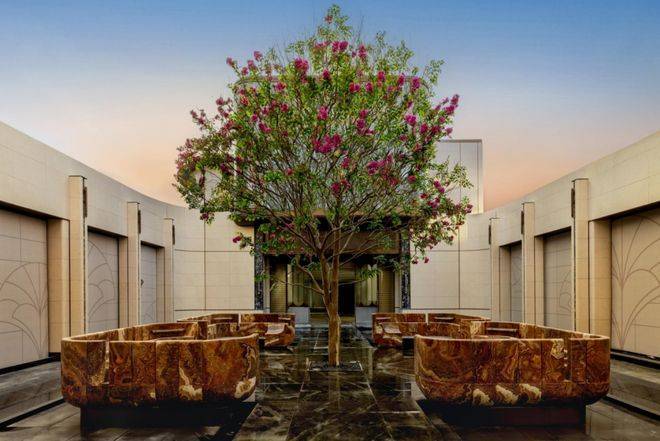 海派光厅之外归家迎宾树木更是由设计师辗转多个城市才寻到的、树龄超60年的福木“紫薇”。