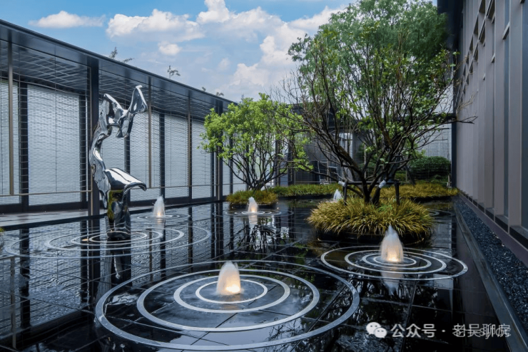 The new Asian international architectural style features a unique pitched roof. The grey ceramic tiles are combined with a metal eave design, creating a stable structure at an angle of approximately 35° to prevent water accumulation. The building's form is harmonious and the golden ratio gives the structure an unparalleled beauty.
