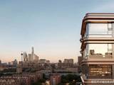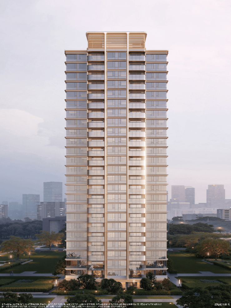 顶部香槟金色格栅塔冠以及壁柱采用香槟金和白色色调,基座采用大面积石材搭配艺术玻璃及古铜色金属窗框。如此颇具辨识度的外立面,未来将刷新徐汇滨江的区域天际线。