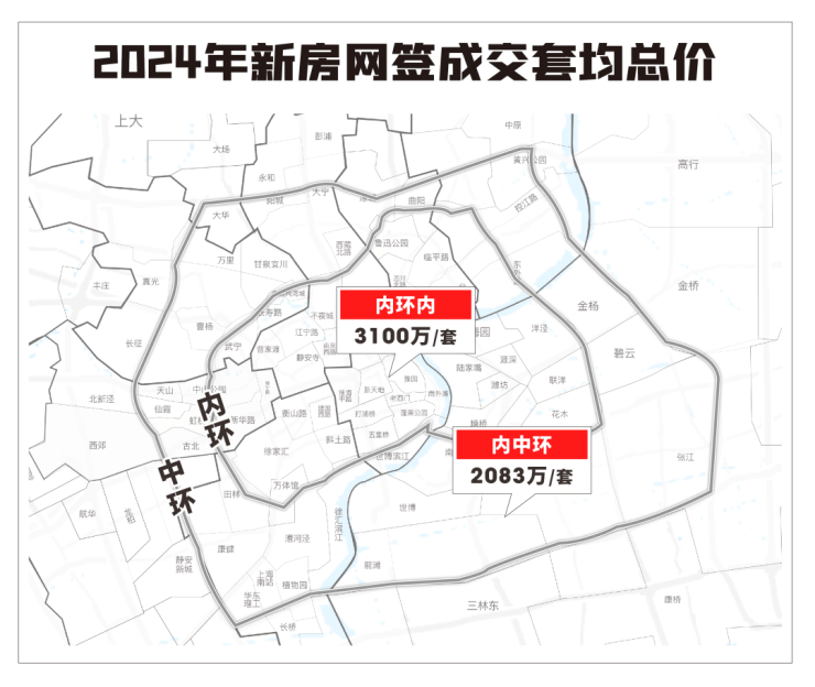 而即将取证入市,同处徐汇滨江高质量滨江发展带的海上·清和玺联动价仅约11万+/㎡!2. 从环线来看,新房成交总价也在逐步提高!