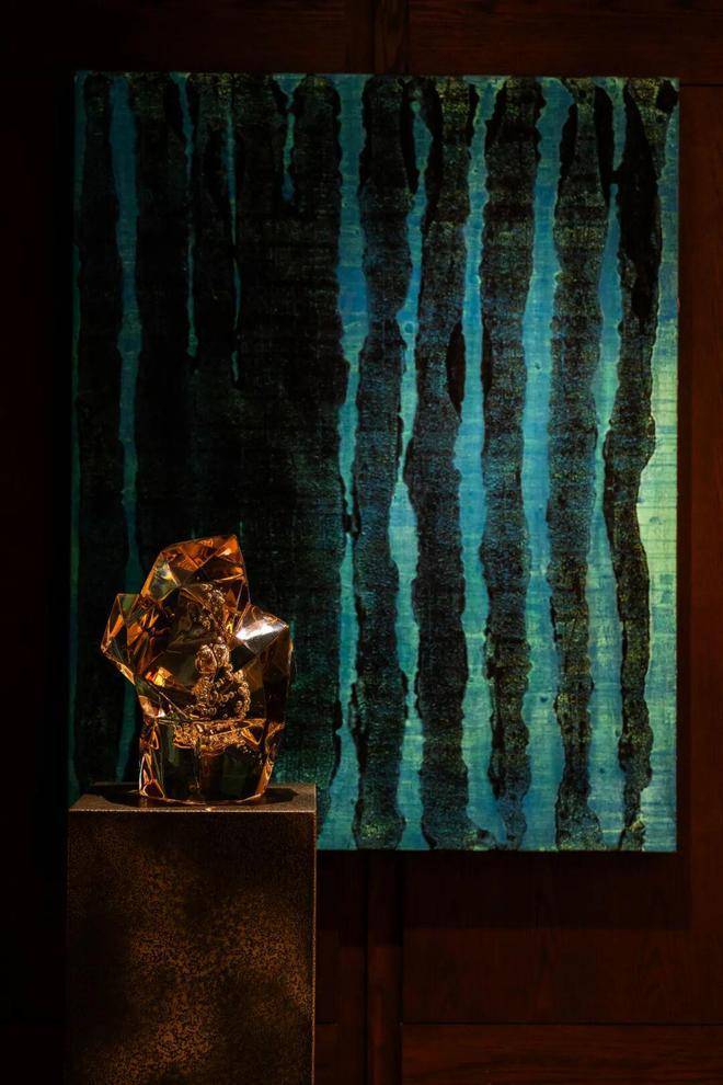 还有专门的艺廊,布置水景,空间灵动,再挂上雕塑家、艺术家的作品,整个空间逼格满满。