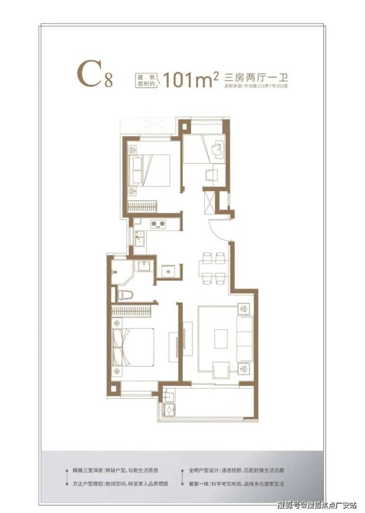 洋房/高层:约101㎡三房两厅两卫,总价约1034万元起(单价约10.2万元/㎡)
