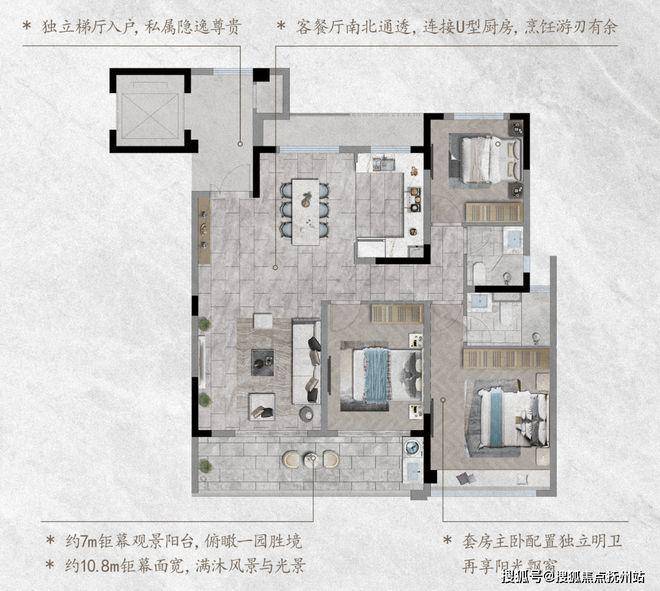 约9.7m长,1.8米宽IMAX阳台,加上约45㎡的大方厅,如此嘉兴市场开创性的设计,在保证采光及观景面更充足的前提下,让空气的对流也更加流畅,更大程度上提升了全屋的通透感。