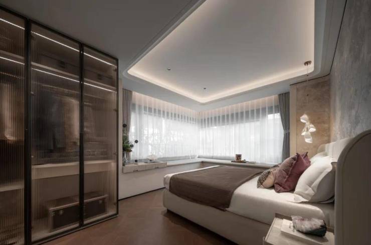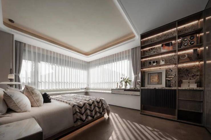 在传统的四房领域,2房朝北几乎是逃不掉的问题,但在招商中旅·观境,做到了三间卧室朝南,并且主卧拥有一个约270度的主卧无柱转角飘窗。