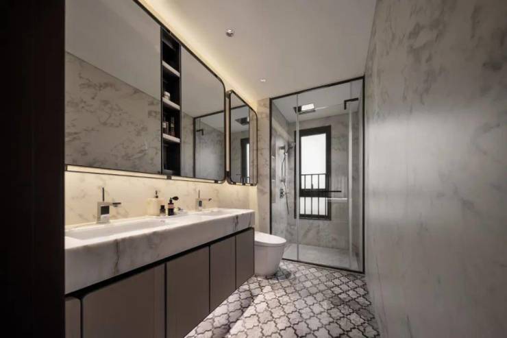 细节方面,主卧套房设计,保证了私密性。主卫的双台盆设计更是相当贴心。能实现男女主人共同洗漱的温馨场景。