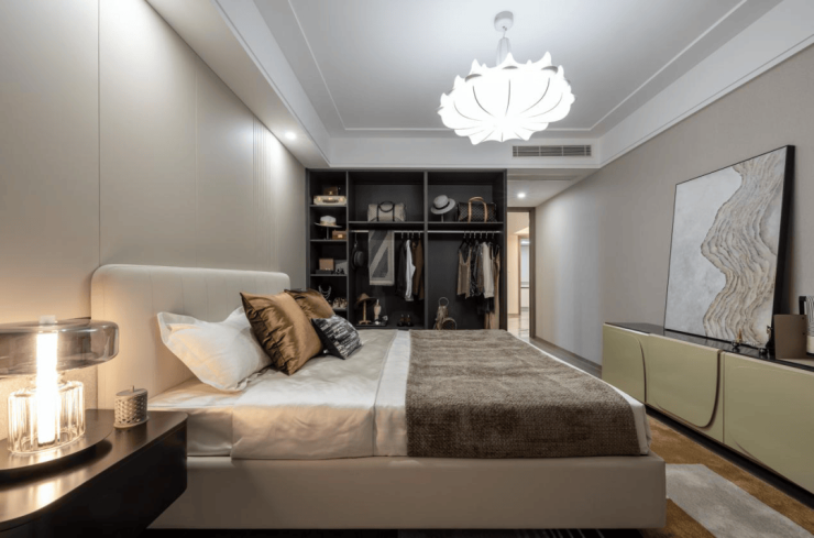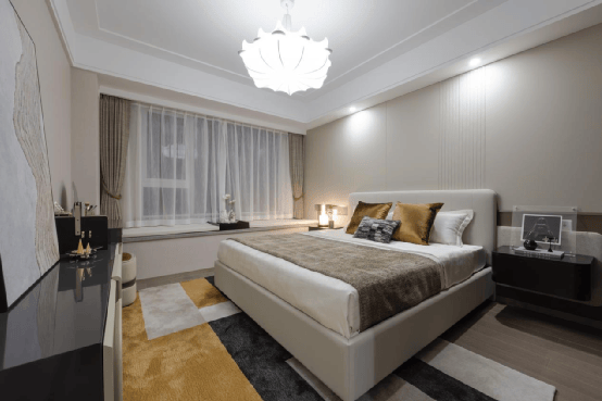 套房式主卧更是尊崇无比,采用LED灯带吊顶,灯光点缀,倍感温馨。瞰景大飘窗设计,拨开窗帘就能沐浴阳光,尽揽室外美景;尊享独立卫浴,夜深了看完世界杯比赛去沐浴洗漱,也不怕打扰到早已休憩的父母。