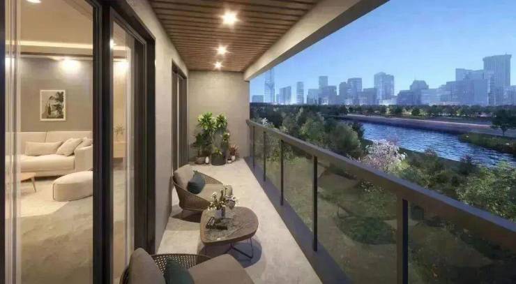 南向连通的约6.7米宽幕阳台,超大宽度采光纳景,打造一个小吧台,中场休息时刻,与好朋友移步阳台,浅酌几杯,面对星空高谈阔论,享受激情四射的畅快时光。