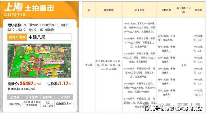 中环麓岛售楼处电话:400-9016-520 今年6月,第五批次土拍首日,中建八局以总价81.95亿元竞得南大巨无霸地块,宝山区南大地块分为5个住宅地块(容积率为2.5-2.6)和1个办公和商业地块(容积率为7.2),建设用地总面积约9.9万㎡,规划总建筑面积约32.2万㎡。中环麓岛售楼处电话:400-9016-520