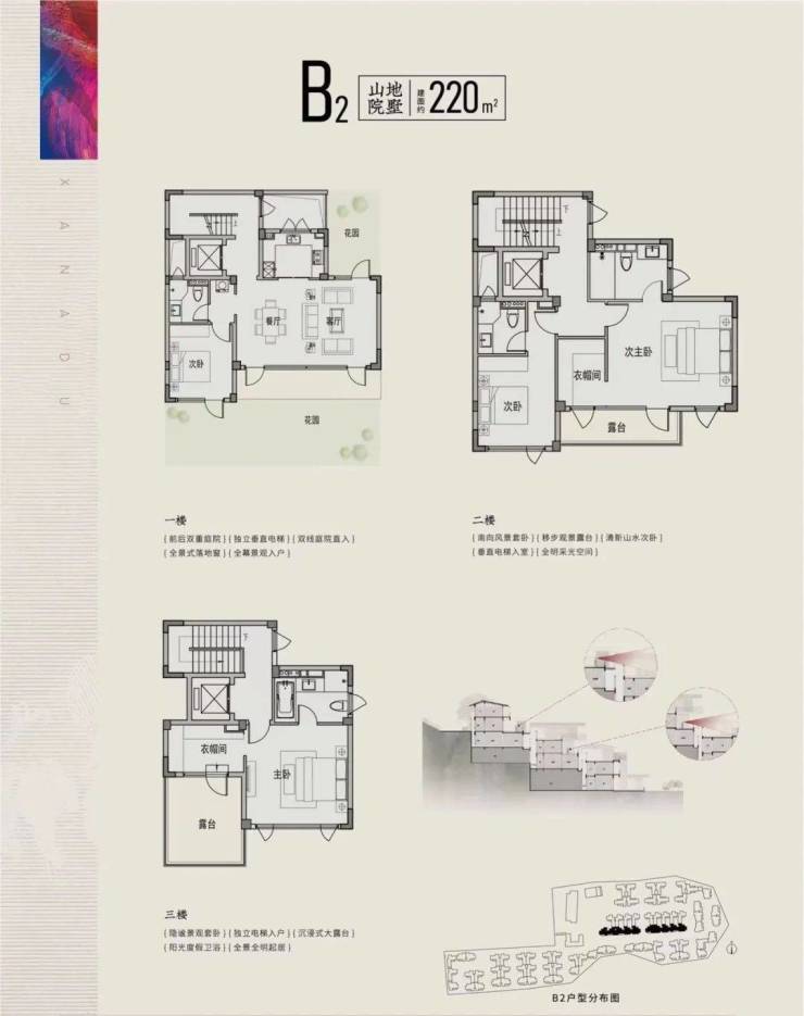 【产品规划】:首开地块为A1湖晓云墅,位于仙女湖西侧,总用地面积约3万㎡,总建筑面积约4.36万㎡。规划16幢3F湖山院墅,总户数81户,地上三层(一层3.4米、二层3米、三层2.9米+坡屋顶),地下一层(层高3.1米-6.6米)