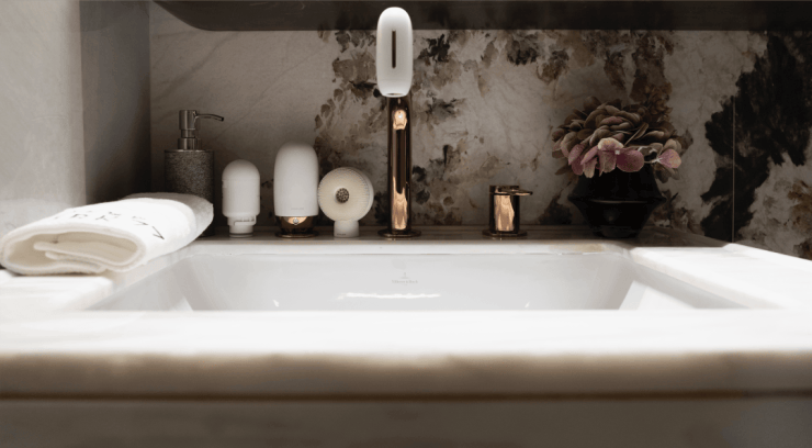 卫生间也是重金打造,无论大小户型,主卧卫生间均增加科勒美妆龙头和美妆冰箱;