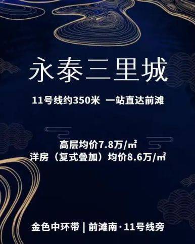 距前滩仅地铁1站的三林全新盘【永泰三里城】二期15-15A地块即将入市!