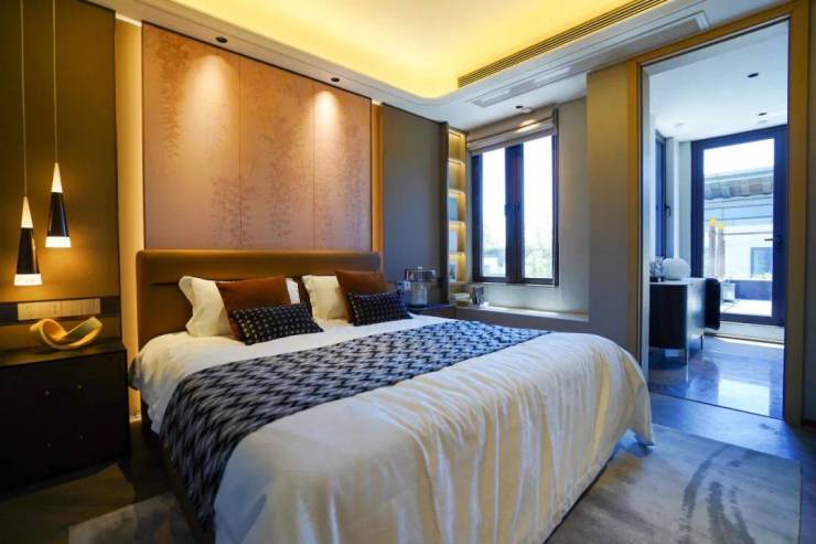 一楼270度围合庭院,将客厅与庭院融为一体,满足东方人对于生活的向往。置身其中,嗅觉、听觉、触觉、视觉、味觉五感被全面唤醒,充分感受到身居闹市而独享自然静谧的奢华体验。