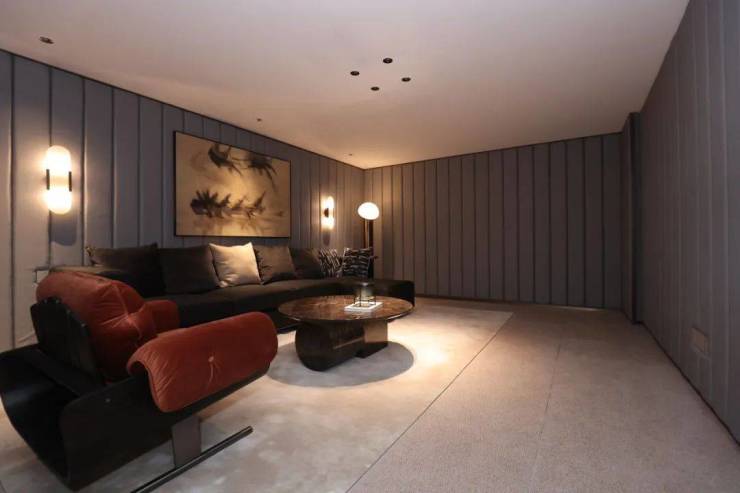 挑高地下室是空间隐藏的“彩蛋”,避免了传统地下室不透风不采光的通病,巧妙变身为人生的志趣空间。