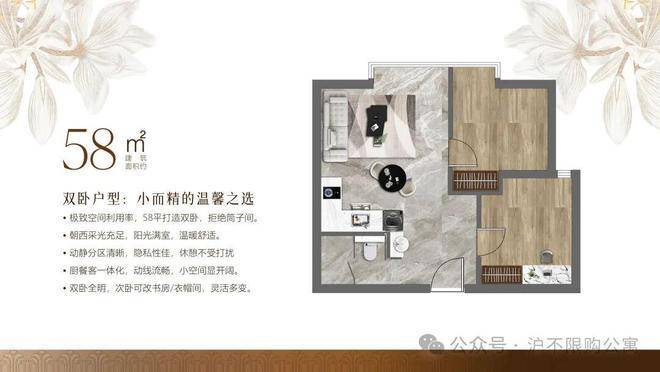 面积59.7-70.86平 总价320万起,法式轻奢 全明小户型公寓