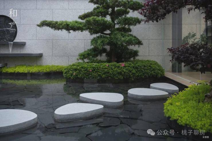 园林景观汲取中式传统园林与东方建筑底蕴,取自珠宝之形意之美,又归于自然的造景艺术,营造一方可望、可行、可游、可居的园林逸境。