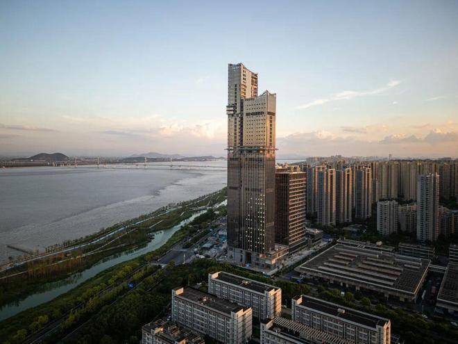 从地图测距来看,钱塘之门距离钱塘江岸仅约180米,真正占据着钱塘江头排的黄金席位,推窗即可欣赏到浩渺江景与四季变幻。
