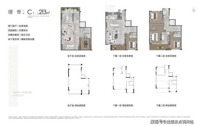 建面约213㎡下叠户型图