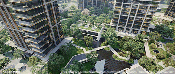当然,在家里是景观,下楼就是公园,下面这种南侧花园人视角的示意图,是不是让你一秒来到浪漫的法式公园!