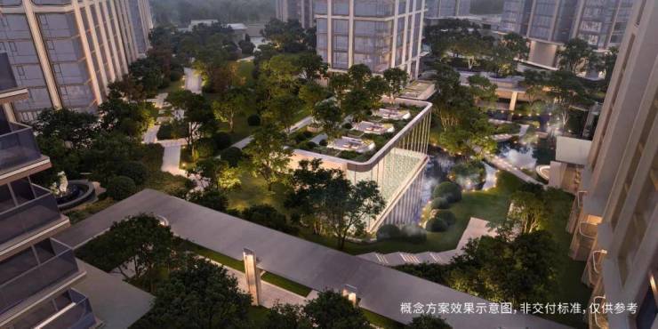 3500㎡下沉水苑“回归之境”,汇聚会客、泳池、茶室等多功能空间;百米绿茵“探索之境”,融入派对庭院、文学花园与游戏甲板;