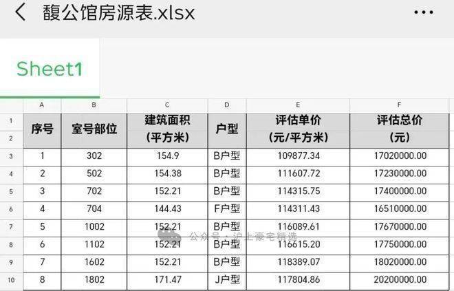 12套别墅一房一价表