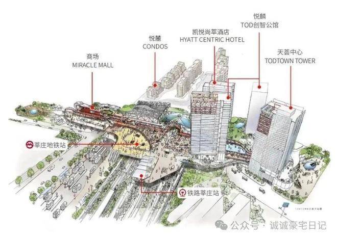 天荟悦麟是TOD开发模式,即以火车站、机场、地铁、轻轨等轨道交通及巴士干线等公交站点为中心、以5~10分钟步行路程为半径建立中心广场或城市中心,集工作、商业、文化、教育、居住等为一身的混合用途步行化城区开发模式。