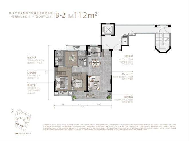 • LDKG一体:餐厨客厅阳台一体式设计,强化情感交融
