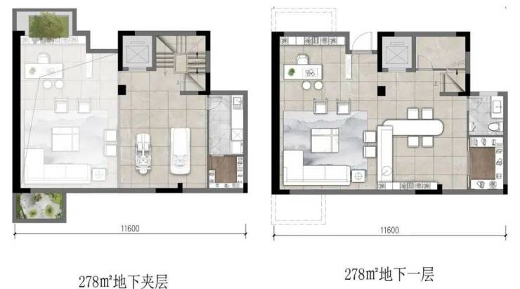 以地上278㎡+地下84㎡的边套户型为例。