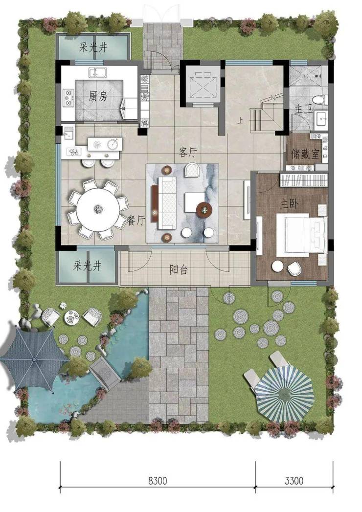 相当于在不占面积的前提下,拥有一个私享花园,这是一个可塑性极强的私密活动空间。