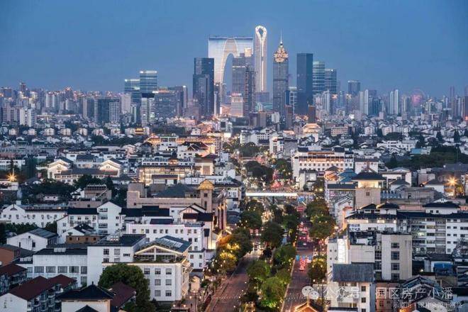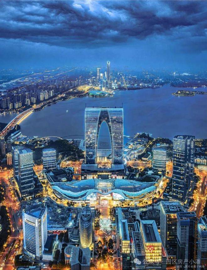 园区发展的第一站、示范区,东方之门、苏州中心、环球188等地标伫立,CBD的商业规模、办公集群规模、公园、学校资源云集。
