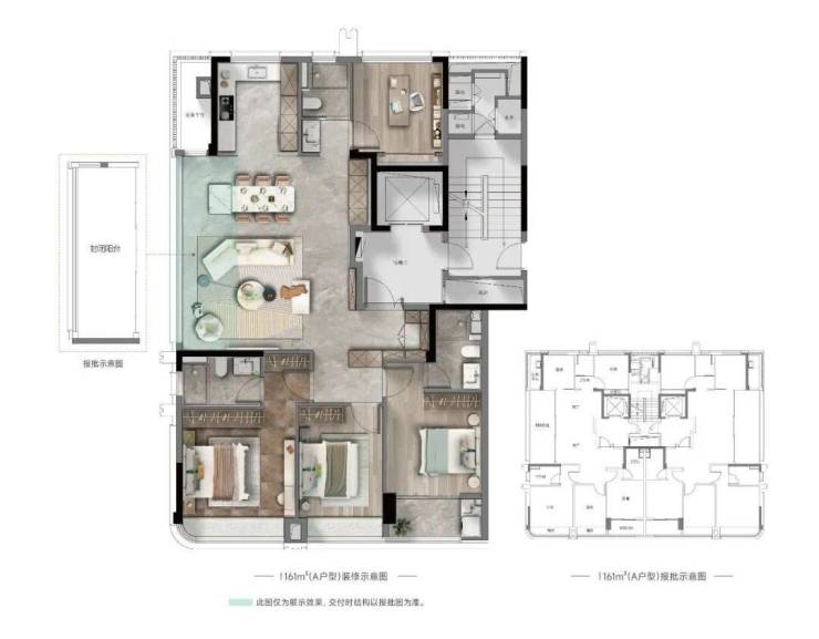 161方4房3卫,两梯两户设计。