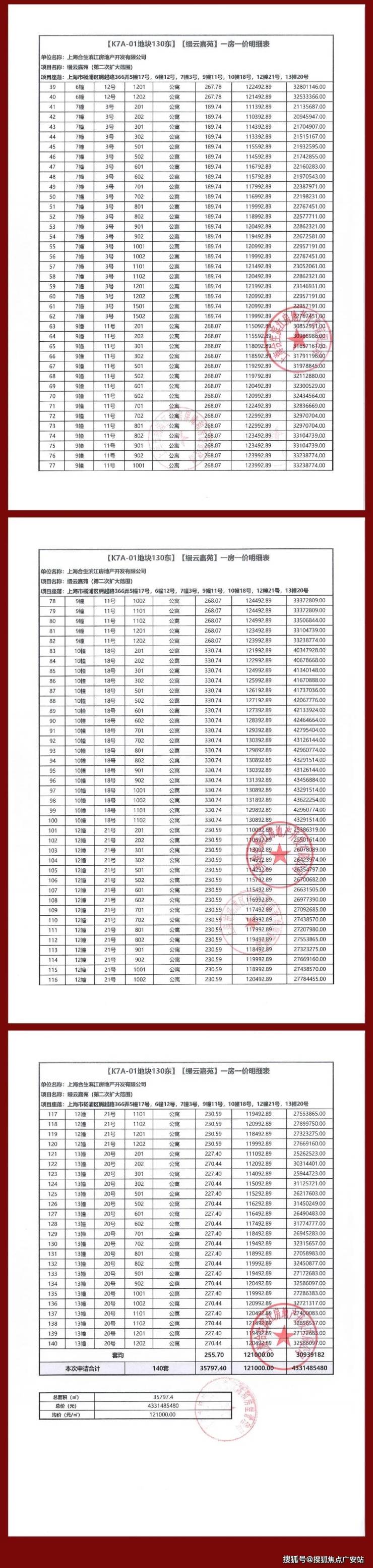 ▲ 一房一价汇总表