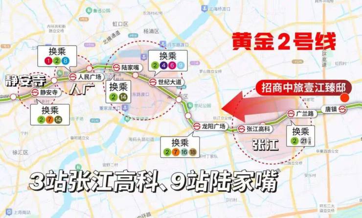 2号线烫金大动脉:2号线3站张江高科,9站陆家嘴,连缀包括嘴、南京东路、人民广场、南京西路、中山公园、天山顶级商圈,贯通4个国际商务区,南北互连两大国际机场和虹桥火车站,“奢华”程度不言而喻。