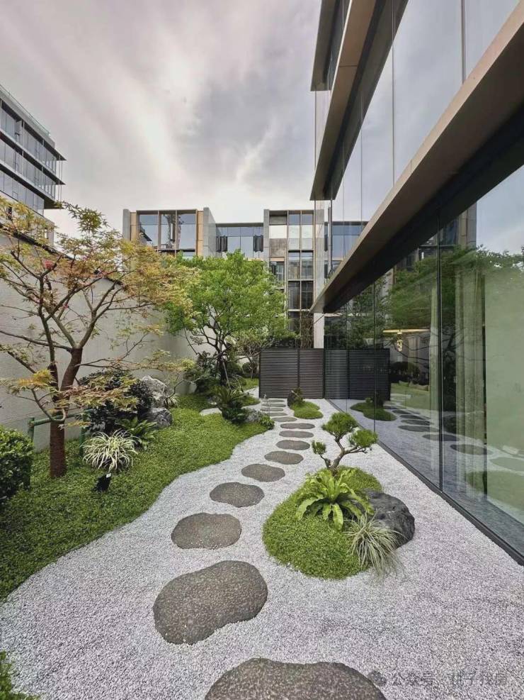 The floor-to-ceiling Windows on the first floor are designed with corner gardens