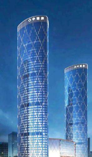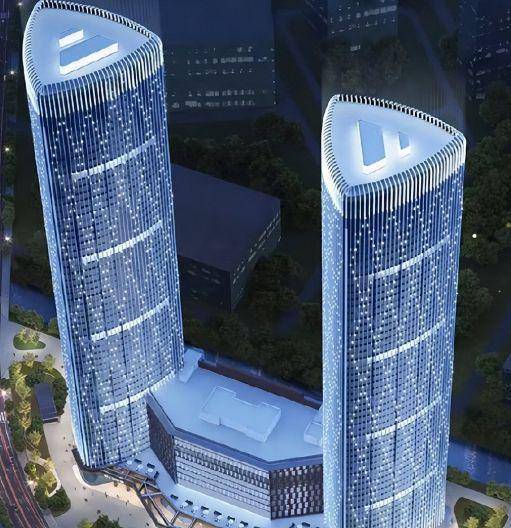 建筑形态:双塔250米超高层,含T1写字楼、T2行政公寓及T3兰博基尼酒店裙楼