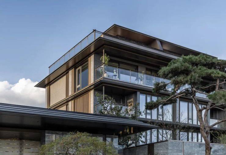 项目由斩获BEST100中国最佳设计大奖、CREDAWARD地产设计大奖等全球无数设计大奖的大师设计团队——李益中空间设计、汇张思建筑设计事务所、蓝颂设计集团,以及水平线设计为上海量身定制的庐系首作。